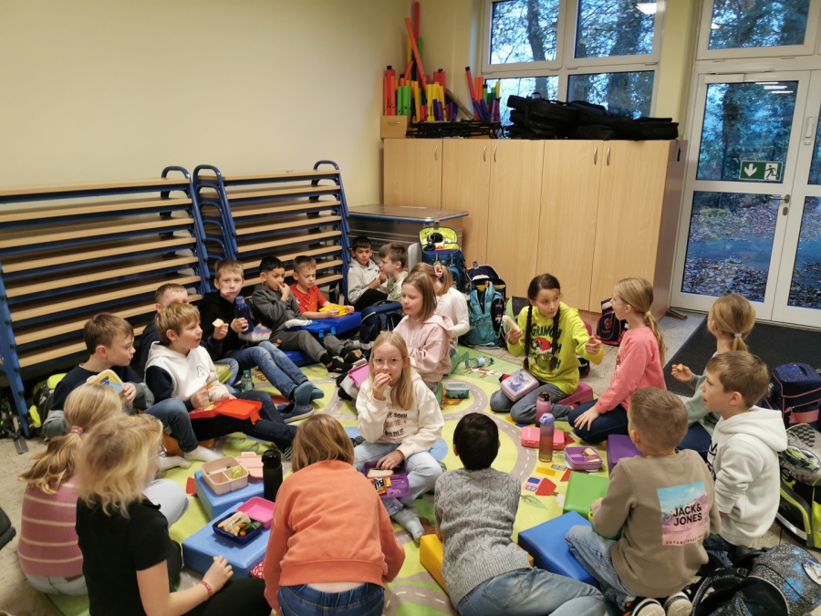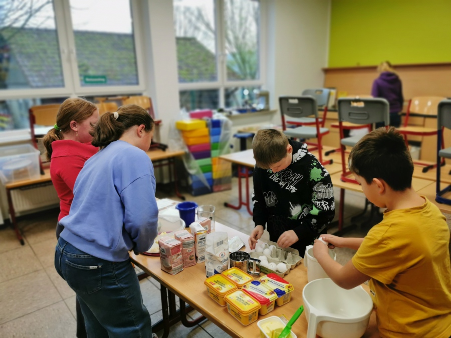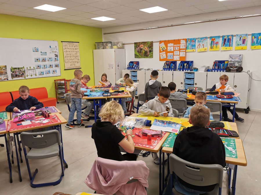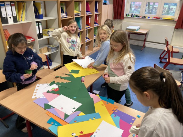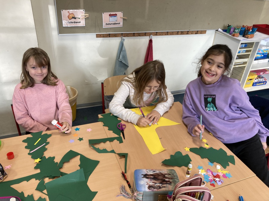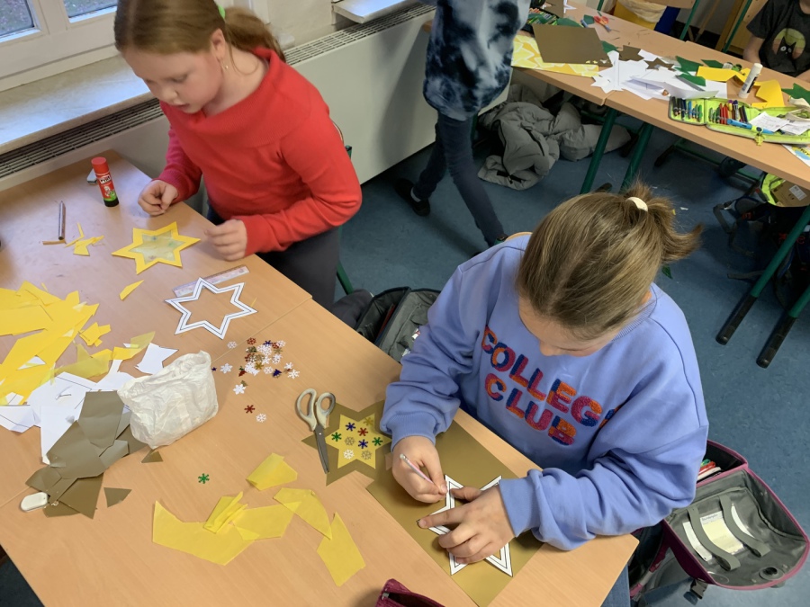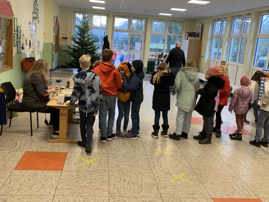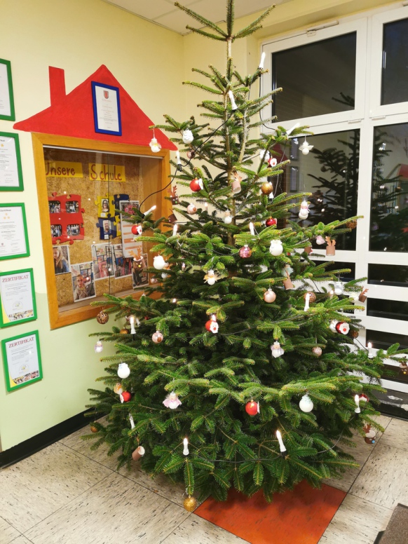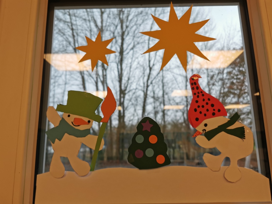 Pünktlich zur Adventszeit haben alle Schülerinnen und Schüler zusammen mit ihren Lehrerinnen die Klassenräume weihnachtlich/winterlich geschmückt. Dazu wurden tolle Fensterbilder gebastelt. Da das Basteln ja auch anstrengend ist, gab es in der großen Pause heiße Waffeln für alle! Unser fleißiger Hausmeister Herr Witte hat die weihnachtliche Dekoration mit dem Aufstellen des Tannenbaums in der Pausenhalle abgerundet.