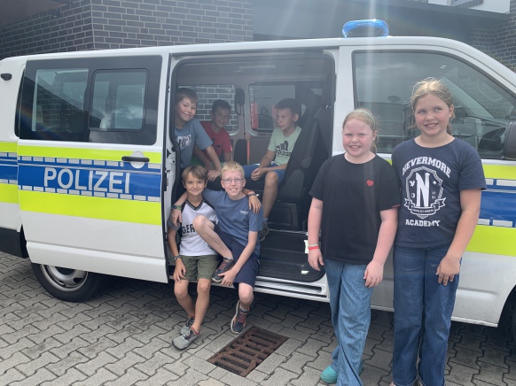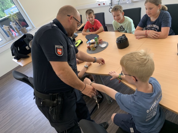 Die Viertklässler/innen beschäftigen sich im Sachunterricht gerade mit dem Thema "Berufe". Dementsprechend erfolgte eine Einladung von Herrn Dröge, die Polizeistation in Friesoythe zu besuchen. Herzlichen Dank!