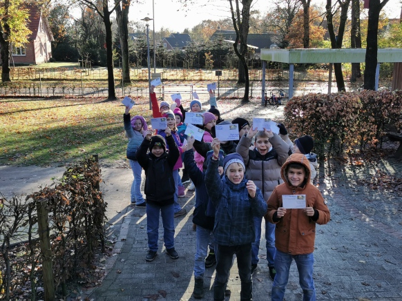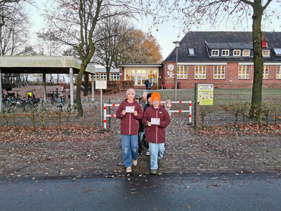 Klasse 3 und 4 bringen ihre Briefe zum Postkasten!