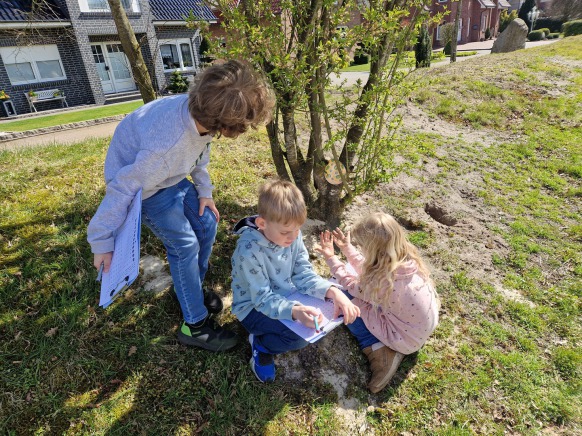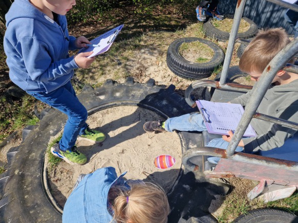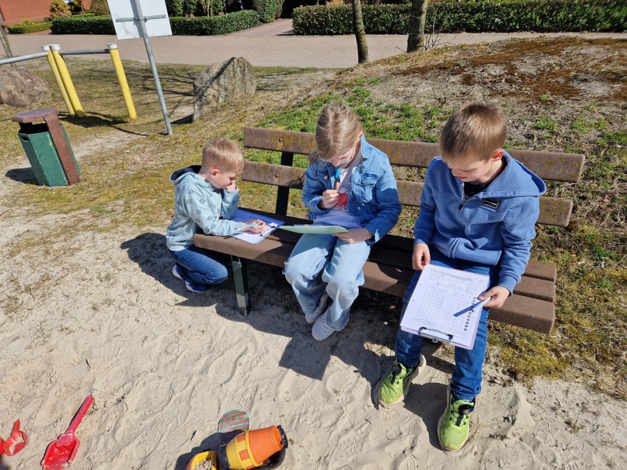 Einen Rechenspaziergang mit "Ostereiersuche" haben die Erstklässler/innen kurz nach Ostern auf dem Thüler Spielplatz mit ihrer Klassenlehrerin Frau von Gösseln durchgeführt. So macht der Mathematikunterricht noch mehr Spaß!