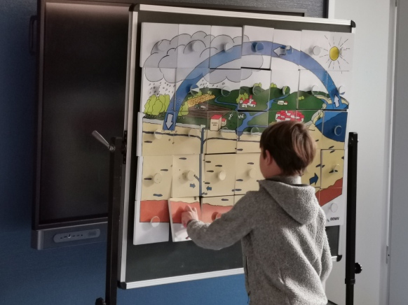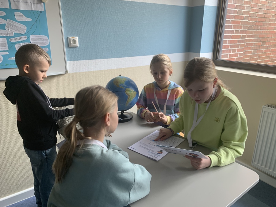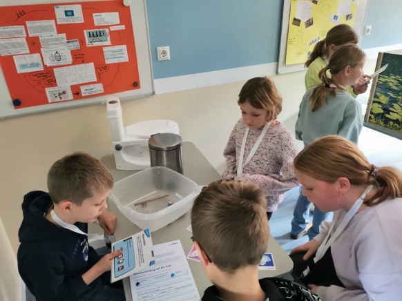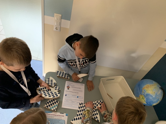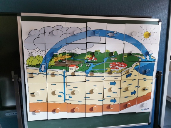 Nach einer kurzen Einführung durfte das Wasserwerk besichtigt werden, was für die Kinder sehr beeindruckend war. Im Anschluss gab es ein kleines Frühstück, welches vom OOWV vorbereitet wurde. Danach hieß es "aufgepasst"! Denn nun hatten sich Fehler in einer Darstellung des Wasserkreislaufes eingeschlichen. Alle Kinder machten fleißig mit, so dass zum Schluss das richtige Gesamtbild entstand. Danach wurden "Wasserspartipps" gesammelt. Zum Schluss fanden Gruppenarbeiten zu den Themen "Wasserverteilung auf der Erde", "Wasserschutz" und "Teichpolizei" statt.